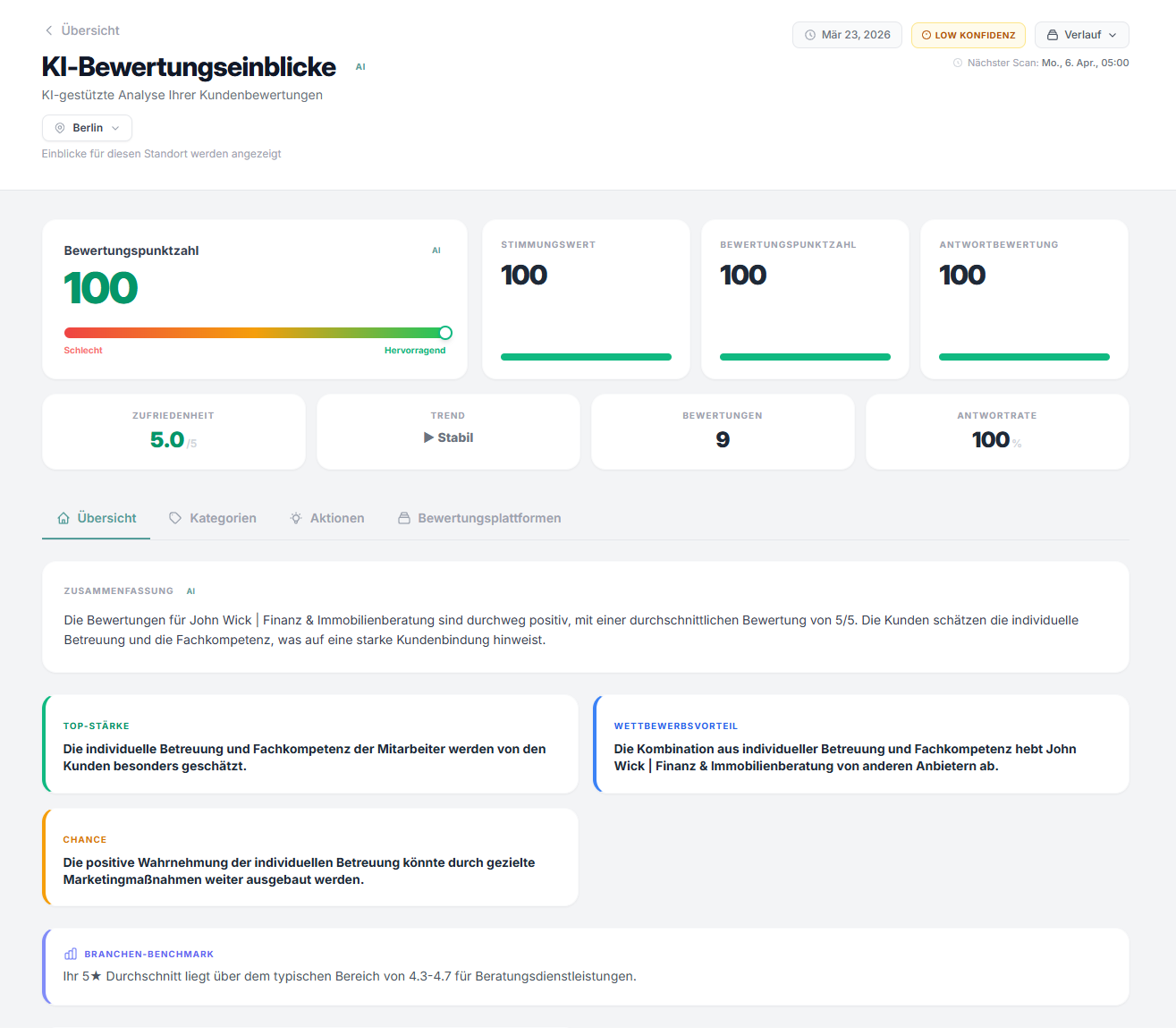 mit unserer KI Bewertungsanalys kannst Du dir schnell einen Überblick über die aktuelle Bewertungssituation verschaffen.
